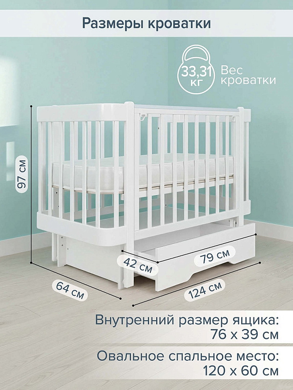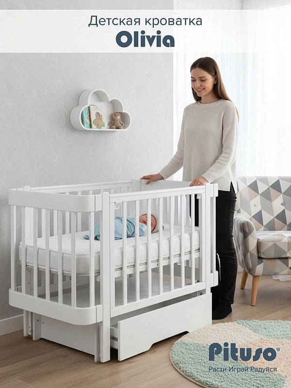 Детская кроватка Pituso Olivia маятник,ящик Pit-101 Белый-БелыйНет оценокХарактеристики