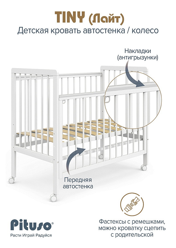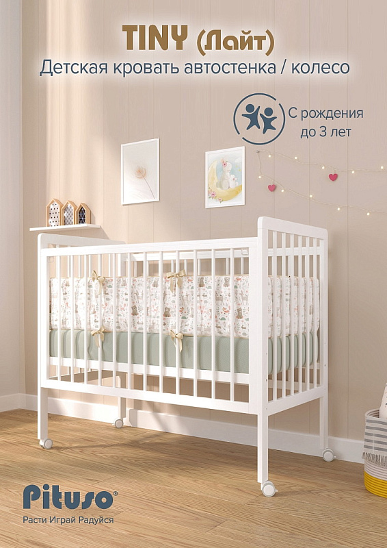 Детская кроватка Pituso Tiny лайт автостенка/колесо Белая аляска