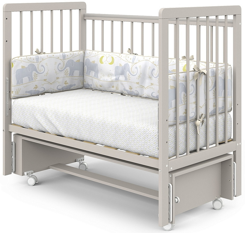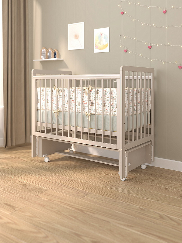 Бортики кровати имеют накладки (антигрызунки), которые будут актуальны при прорезывании зубов и не травмировать десна.
