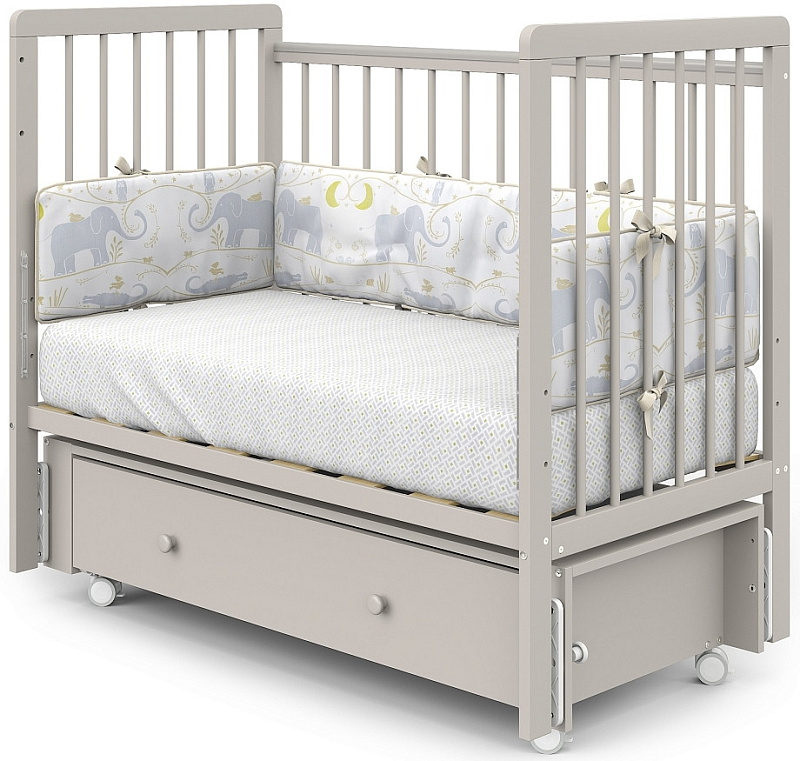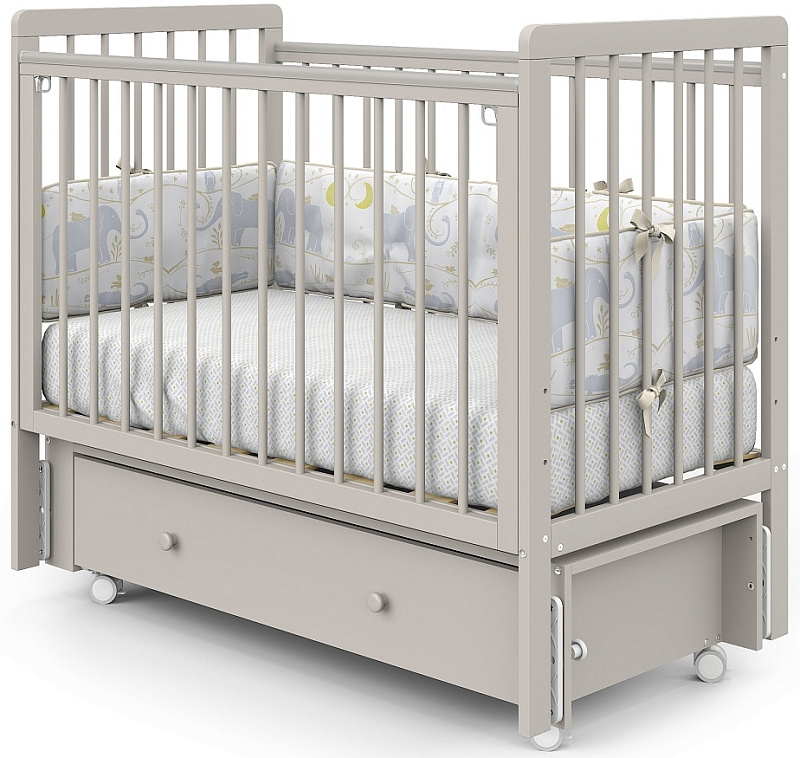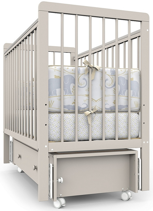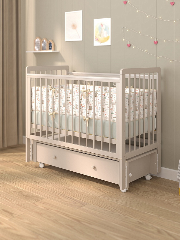 Детская кроватка Pituso Tiny продольный маятник, колеса,ящик Кашемир