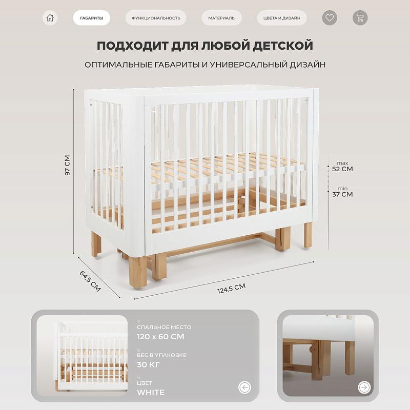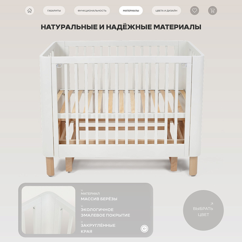 закругленные края кроватки гармонично вписываются в общую концепцию минималистичного стиля, создавая ощущение мягкости пространства