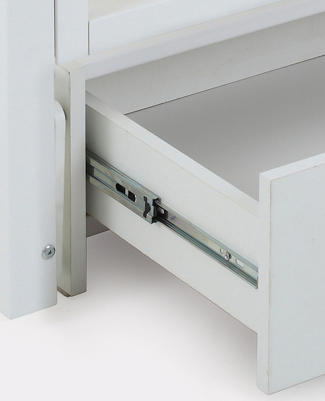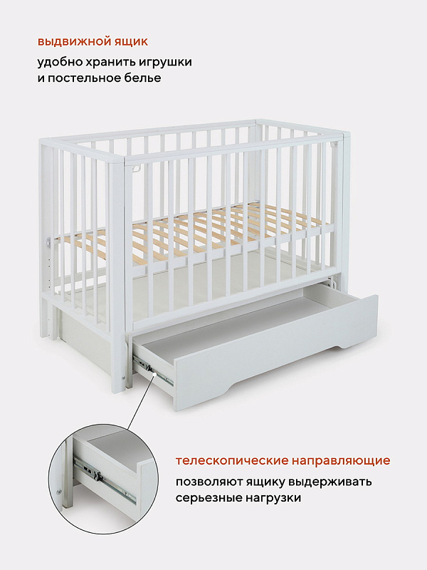 - съемную боковую стенку удобно опускать нажатием двух кнопок (курковой механизм). Также ее вовсе можно снять и, например, придвинуть к кровати родителей, чтобы обеспечить спокойный сон маме и малышу. Когда кроха вырастет, боковая стенка снимается - кровать превращается в уютный диванчик