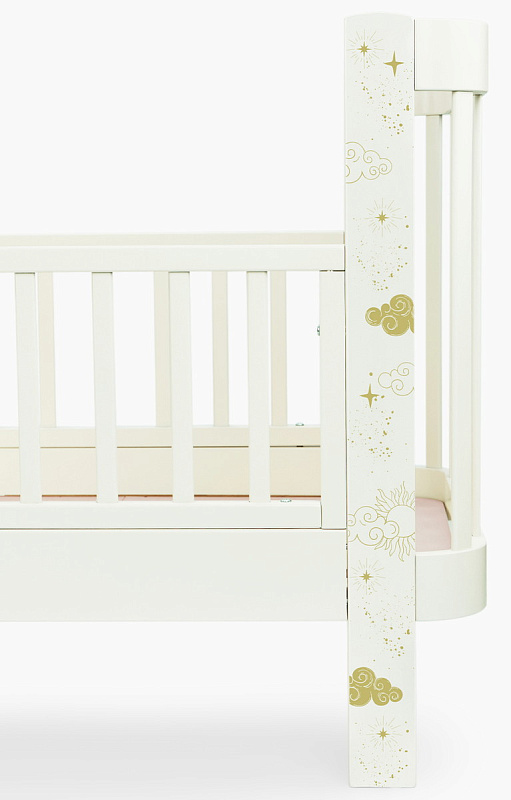 Бортики стенок со специальными накладками для защиты малыша в период прорезывания зубов.