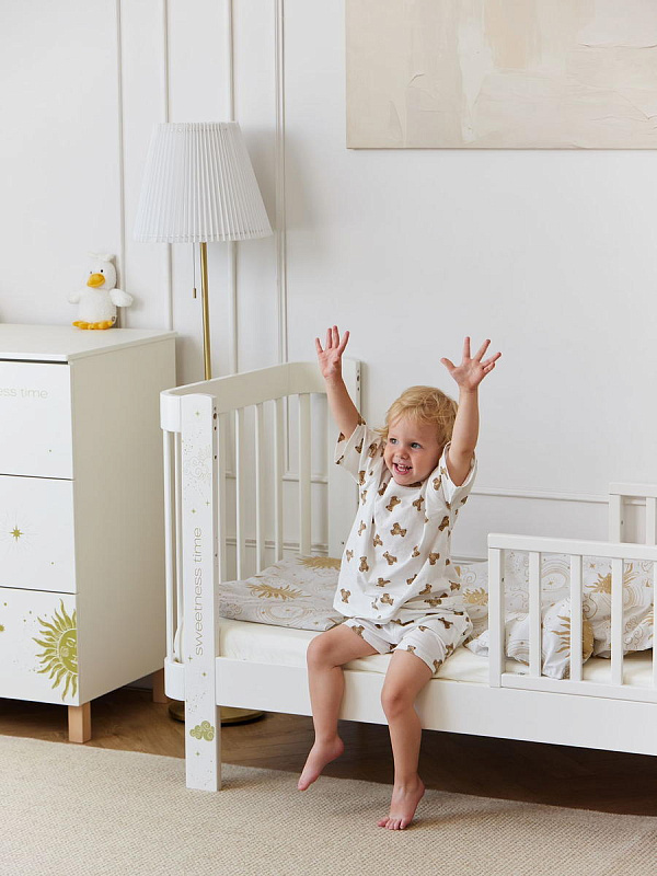 Детская кроватка-трансформер Happy baby Mommy Love в комплекте с расширением 160х70 milky