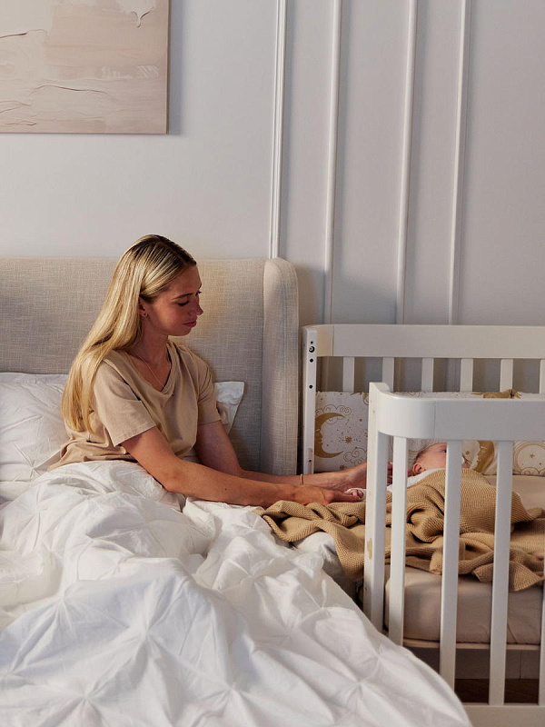 Процесс разборки и установки комплекта расширения максимально прост и интуитивен. Детали легко вставляются, превращая люльку в полноразмерную детскую кровать. Это удобство делает MOMMY LOVE™ отличным выбором для семей, ценящих практичность и легкость использования. Созданная с использованием высококачественных материалов, кровать обеспечивает долговечность и стиль. Современный дизайн и простота в уходе делают MOMMY LOVE™ идеальным местом для отдыха вашего малыша и удобным выбором для вас.