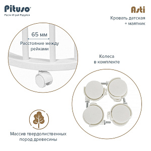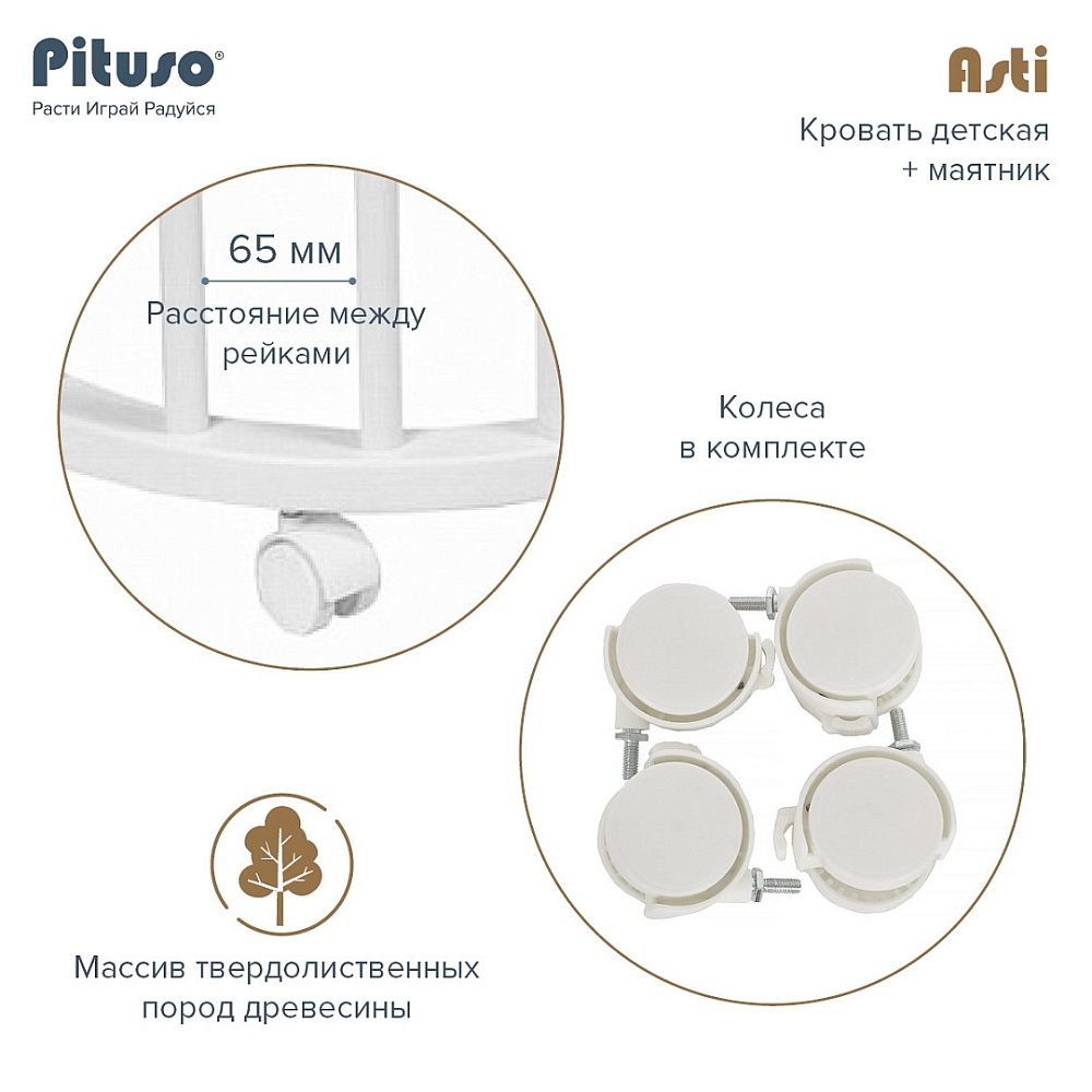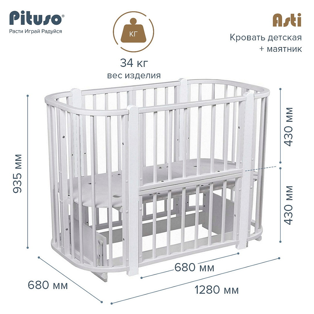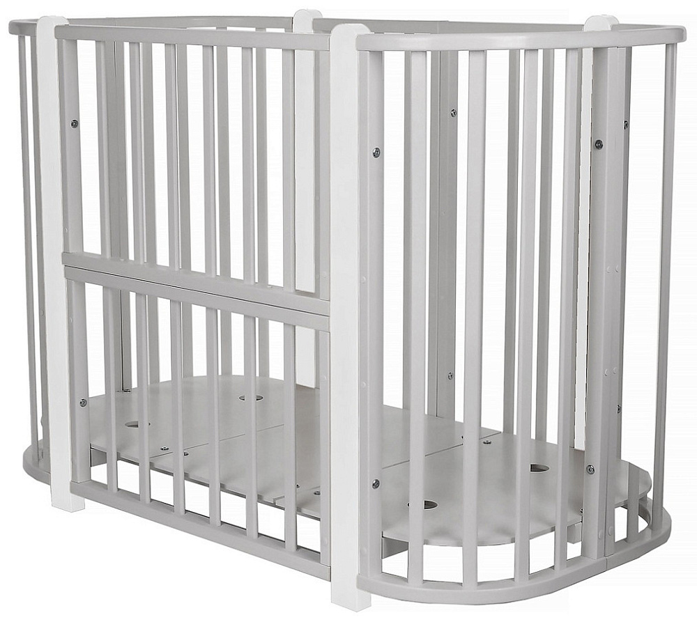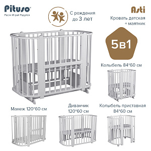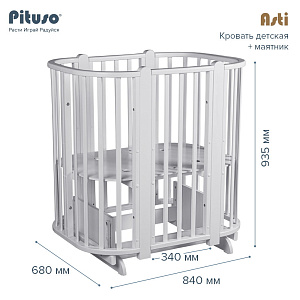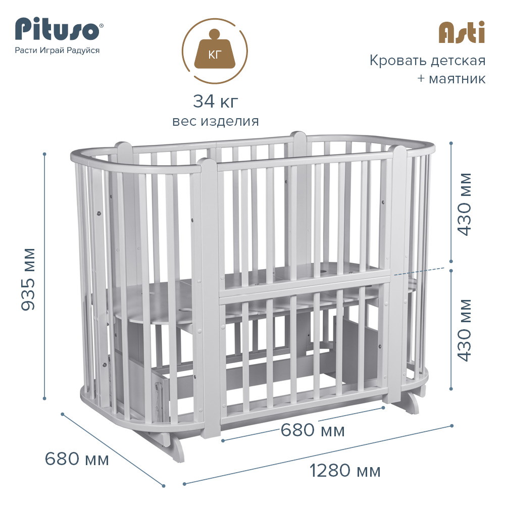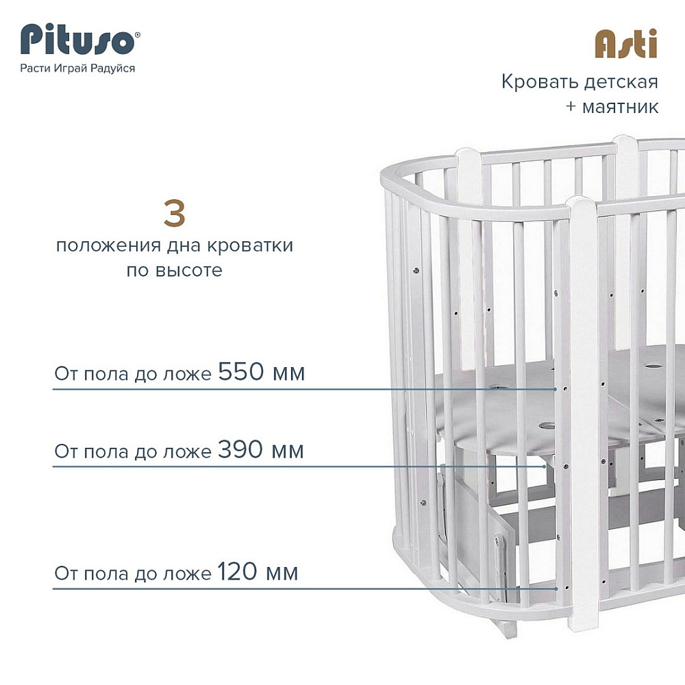Детская кроватка-трансформер овальная Pituso Asti + маятник 5 в 1 Серый-БелыйНет оценокХарактеристики