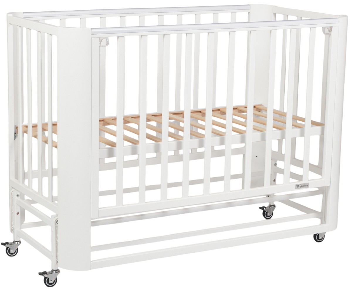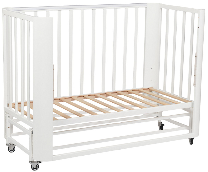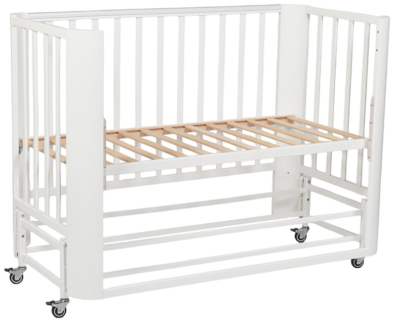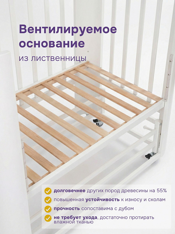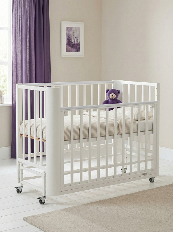 Съемные четыре колеса - чтобы без труда передвигать кроватку по квартире, у колес есть стопоры.