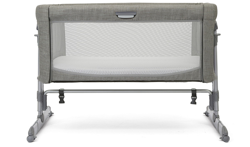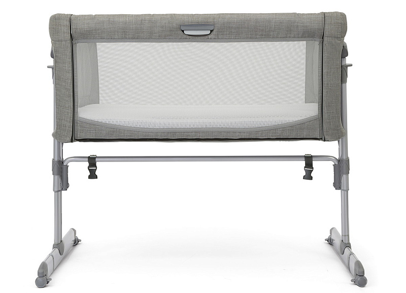 Высота колыбели регулируется нажатием клавиш с двух сторон. Можно ставить под наклоном. На ножках расположены резиновые колесики, которые не оставляют следов на покрытии любого типа. Благодаря им кроватку можно бесшумно передвигать по квартире. Для безопасности пристегните специальный ремень к родительской кровати, который идет в комплекте. Зафиксируйте детскую колыбель, как это показано в инструкции. Одна из боковин кроватки бесшумно регулируется по высоте с помощью клавиши. Колыбель компактно складывается, можно взять в поездку.