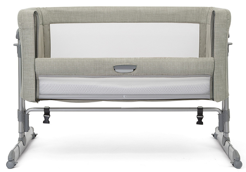 Высота колыбели регулируется нажатием клавиш с двух сторон. Можно ставить под наклоном. На ножках расположены резиновые колесики, которые не оставляют следов на покрытии любого типа. Благодаря им кроватку можно бесшумно передвигать по квартире. Для безопасности пристегните специальный ремень к родительской кровати, который идет в комплекте. Зафиксируйте детскую колыбель, как это показано в инструкции. Одна из боковин кроватки бесшумно регулируется по высоте с помощью клавиши. Колыбель компактно складывается, можно взять в поездку.