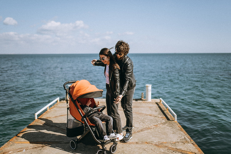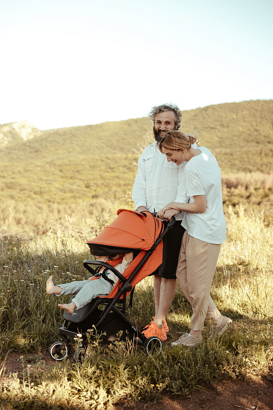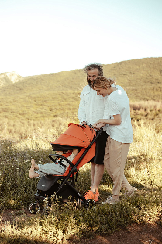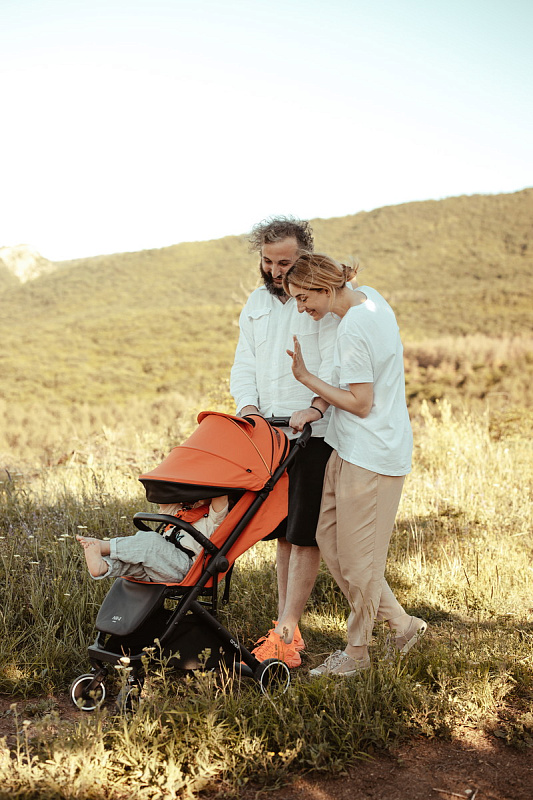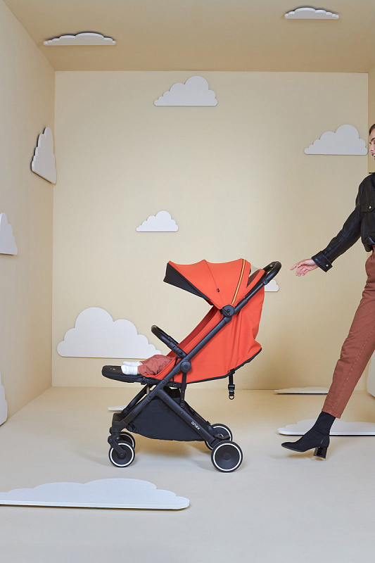 Коляска Air-X stroller с легкостью смягчает ход на неровной дороге благодаря двойной системе амортизации, примененной в ее колесах. Для безопасности и удобства она оборудована 5-точечным ремнем безопасности для фиксации вашего ребенка и съемным бампером. Просторный капюшон сделан из водонепроницаемого материала, который полностью защищает вашего ребенка от дождя, ветра и солнечных лучей. Спинка коляски регулируется в специальное положение для новорожденных детей (0+). Более того, для коляски имеются такие дополнительные аксессуары, как дождевик, сетка от комаров и чехол для ног для еще более комфортной защиты во время прогулок.