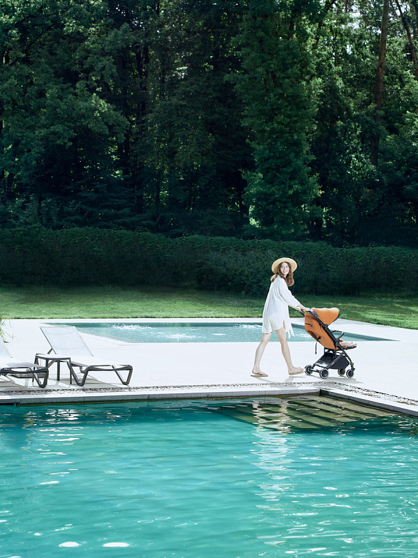 Коляска Air-X stroller с легкостью смягчает ход на неровной дороге благодаря двойной системе амортизации, примененной в ее колесах. Для безопасности и удобства она оборудована 5-точечным ремнем безопасности для фиксации вашего ребенка и съемным бампером. Просторный капюшон сделан из водонепроницаемого материала, который полностью защищает вашего ребенка от дождя, ветра и солнечных лучей. Спинка коляски регулируется в специальное положение для новорожденных детей (0+). Более того, для коляски имеются такие дополнительные аксессуары, как дождевик, сетка от комаров и чехол для ног для еще более комфортной защиты во время прогулок.