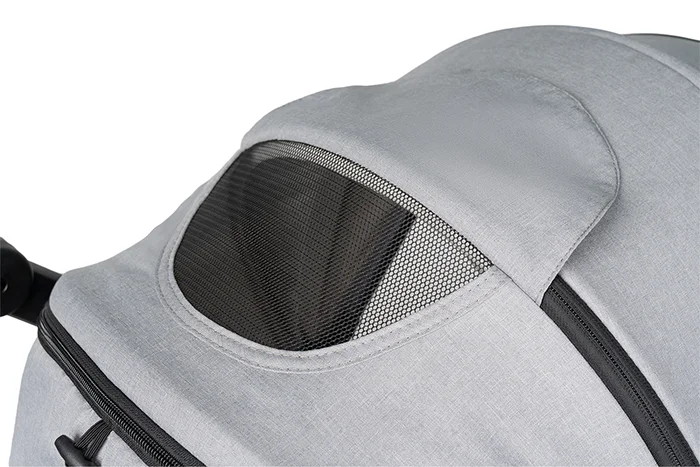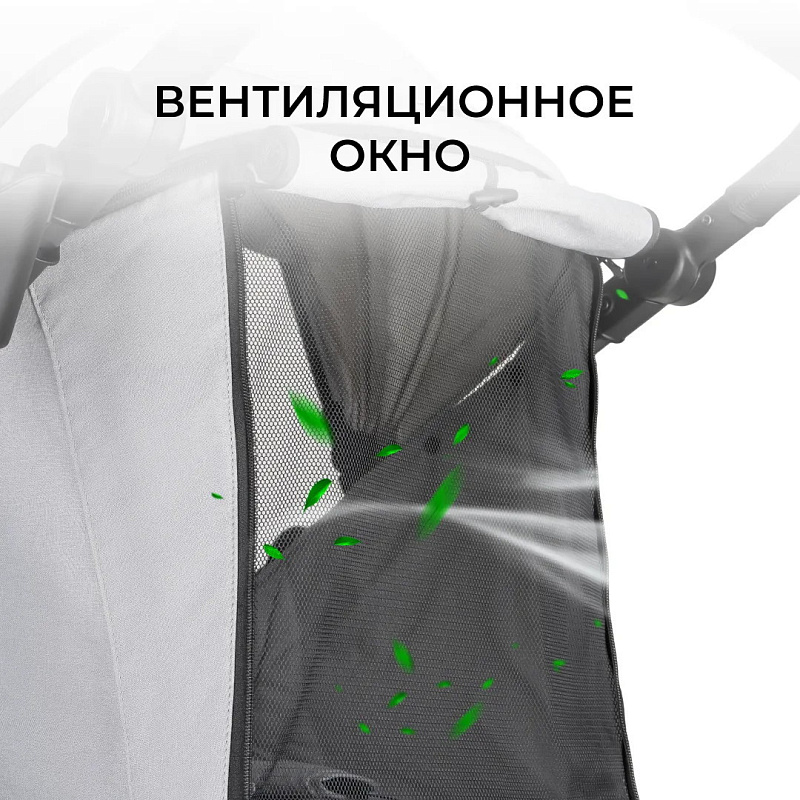5. Капор коляски длинный и может опускаться, обеспечивая необходимый уровень затемнения внутри коляски во время сна. Верхняя часть капюшона оснащена смотровым окошком. На задней стенке спинки коляски есть скрытое окно с москитной сеткой для лучшей вентиляции в жаркую погоду.