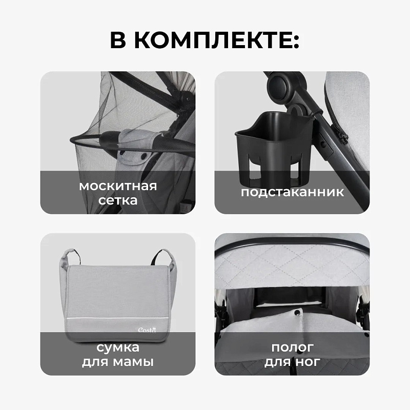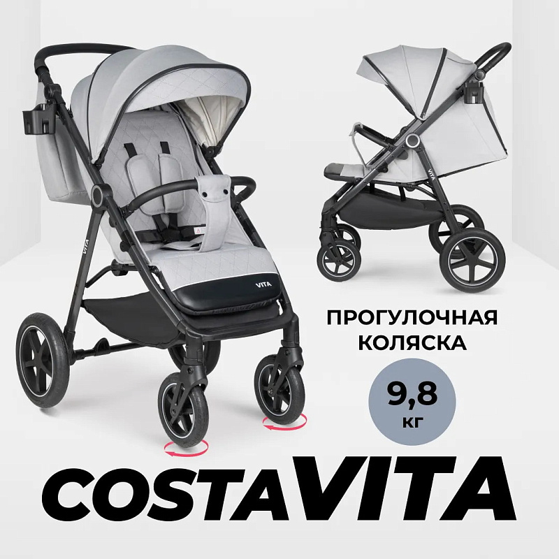 Прогулочная коляска Costa Vita - это идеальное решение для тех, кто ищет надежную, удобную и функциональную коляску для прогулок с малышом. Благодаря своим особенностям и характеристикам, она обеспечивает комфорт и безопасность для вашего ребенка в любое время года.
