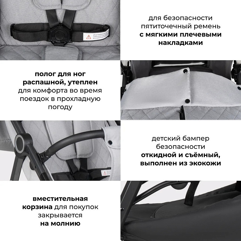 10. Для обеспечения безопасности ребенка имеется пятиточечный ремень с мягкими плечевыми накладками.