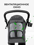5. Капор коляски длинный и может опускаться, обеспечивая необходимый уровень затемнения внутри коляски во время сна. Верхняя часть капюшона оснащена смотровым окошком. На задней стенке спинки коляски есть скрытое окно с москитной сеткой для лучшей вентиляции в жаркую погоду.