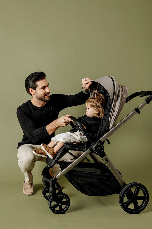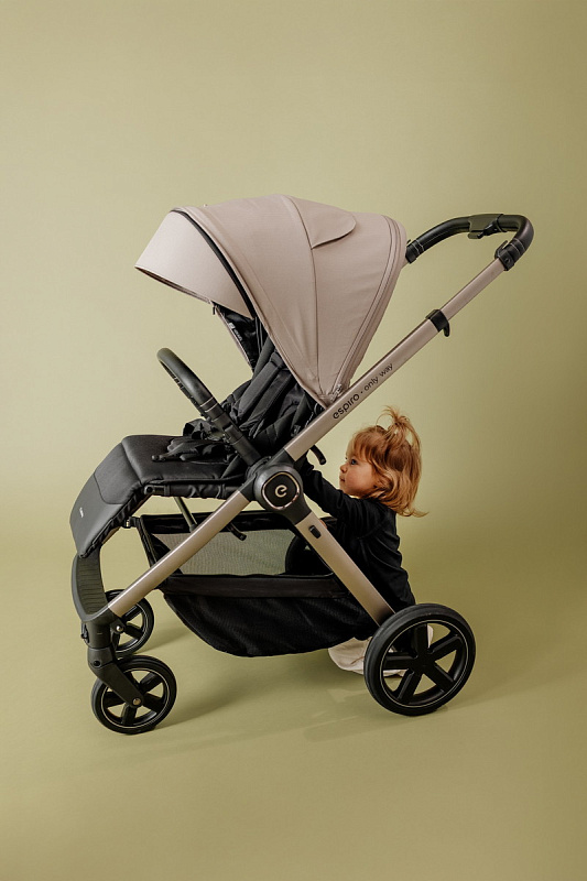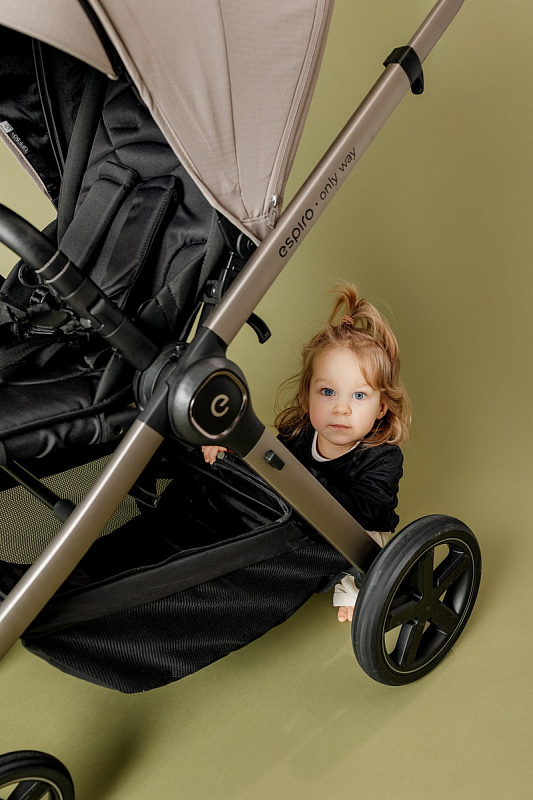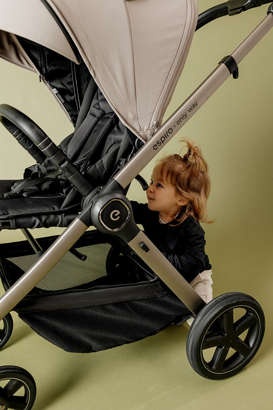 Espiro Only Way — премиальная прогулочная коляска с реверсивным блоком и нагрузкой до 22 кг. Единственная модель в классе с трансформируемой корзиной на магнитах и встроенной москитной сеткой. Совместима с большинством автолюлек через адаптеры, превращаясь в полноценную систему для путешествий.