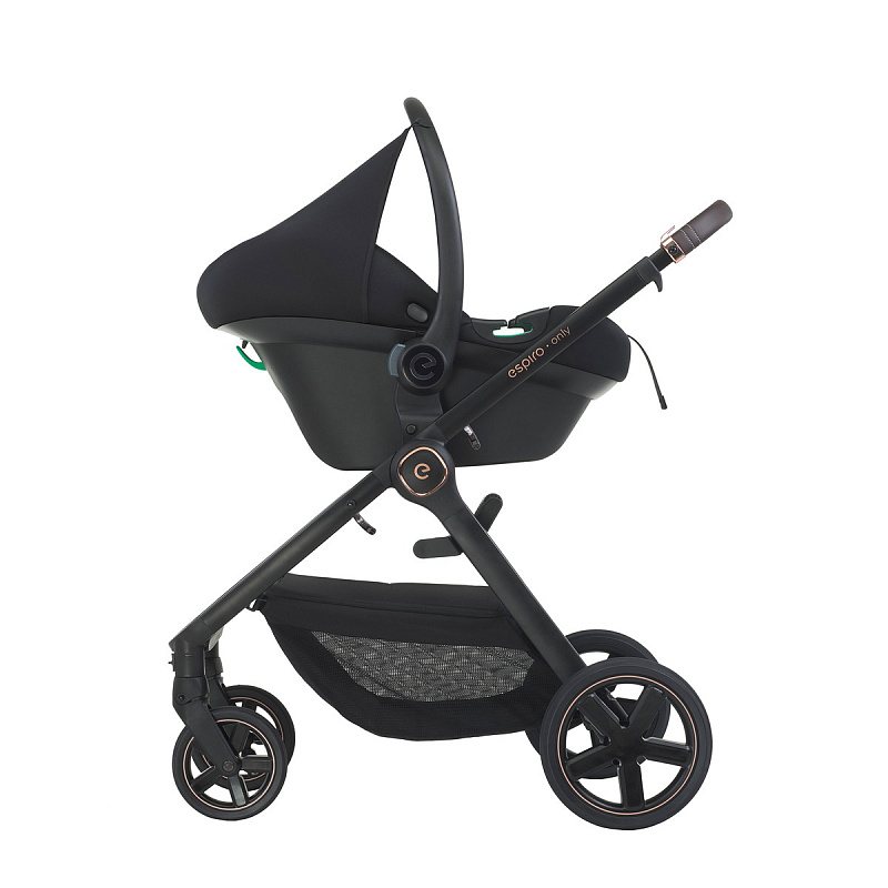 - Система для путешествий (Travel System). Espiro Only Way совместима с большинством популярных автолюлек (группа 0+). При помощи специальных адаптеров вы можете установить автокресло прямо на шасси коляски — это идеальное решение для поездок в торговые центры или коротких прогулок, не тревожа сон малыша при перекладывании из машины. Адаптеры для установки автокресла приобретаются отдельно.