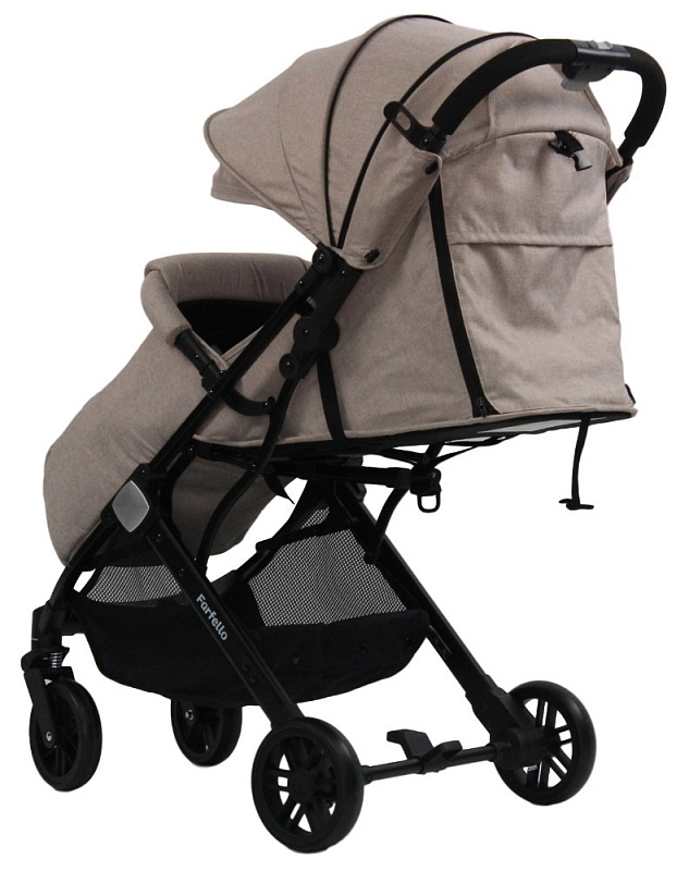 Легкая и маневренная прогулочная коляска,складывается одной рукой. Габариты в сложенном состоянии позволяют брать коляску с собой в транспорт или на борт самолета. Также удобно катить за собой в виде компактного чемоданчика за высокую телескопическую ручку. Оснащена глубоким капюшоном с дополнительной секцией на молнии и большим козырьком с москитной сеткой, защищающим малыша от солнца, а также большим отделом для проветривания. В прохладную погоду от ветра и дождя кроху защитит утепленный полог для ножек, который идет в комплекте. Для комфортного сна конструкция предусматривает раскладывающуюся до 175° спинку и регулируемую по высоте подножку, удлиняющую спальное место ребенка. Наблюдать за малышом мама сможет в смотровое окошко. Безопасность обеспечивают бампер в мягком чехле, тканевый разделитель для ножек и регулируемые по высоте и ширине пятиточечные ремни безопасности с накладками на плечи и центральным замком, открывающим все пряжки замка одновременно.Колеса EVA и мощные пружинные амортизаторы обеспечивают плавность и мягкость в движении, маневренность в узких пространствах достигается за счет возможности вращения передних колес на 360°.Важно отметить, что все колеса коляски съемные, их без труда можно будет помыть после прогулки.Вместительная багажная корзина, позволяющая оставить руки свободными после похода в магазин. А для нужных на прогулке мелочей имеется большой карман.