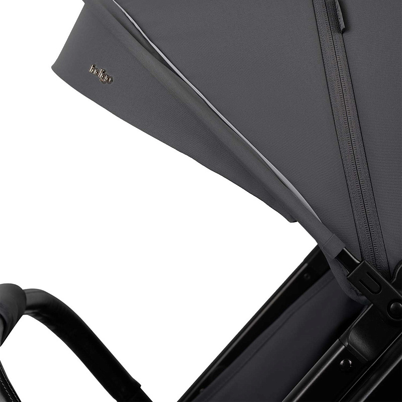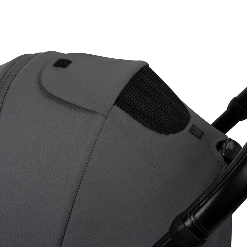 Большой капюшон из водонепроницаемой ткани опускается до бампера.