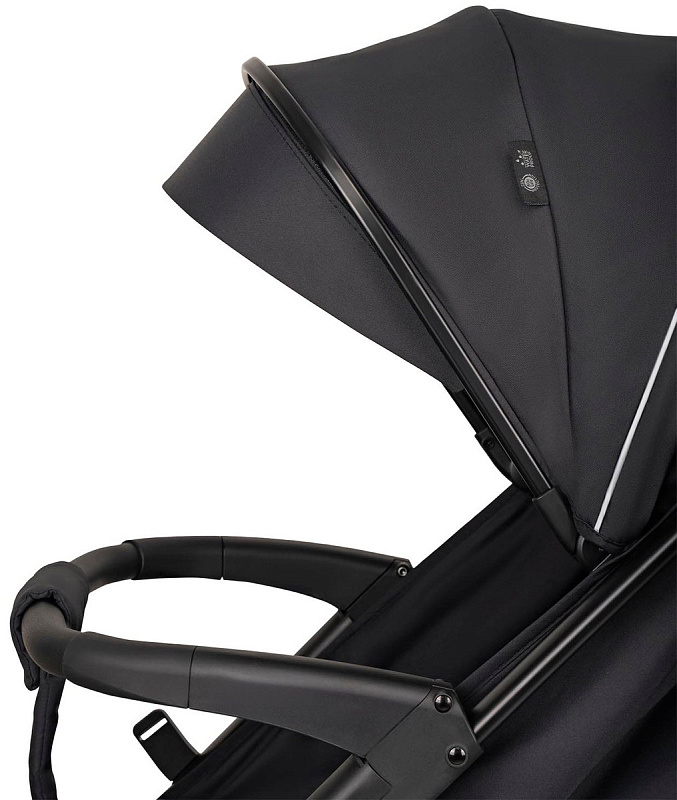 двойной капюшон регулируется в пяти положениях и опускается до самого бампера+козырек от солнца на молнии;