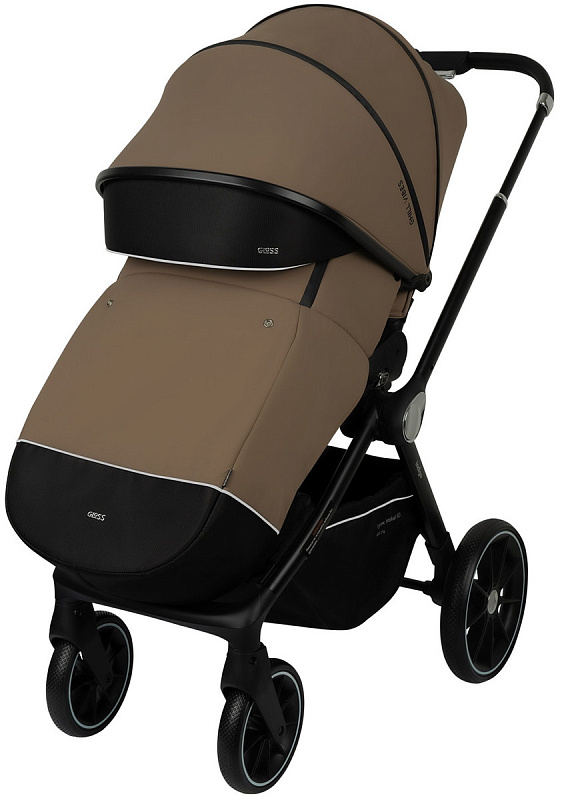 Коляска оснащена 4 полиуретановыми колесами, которые обеспечивают плавный ход и хорошую проходимость на различных поверхностях. Большая корзина для багажа позволяет взять с собой все необходимое для прогулки. В комплекте с коляской идут накидка на ноги, сумка для мамы в виде рюкзака, москитная сетка и подстаканник, что делает ее идеальным выбором для современных родителей.