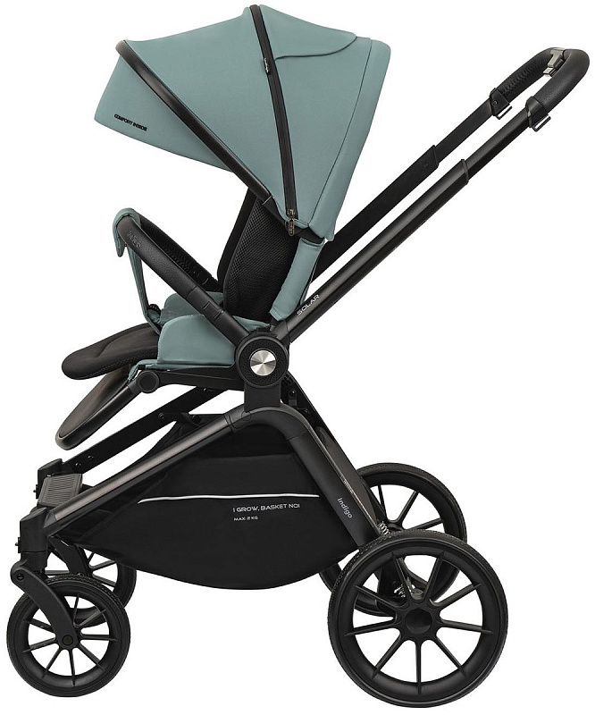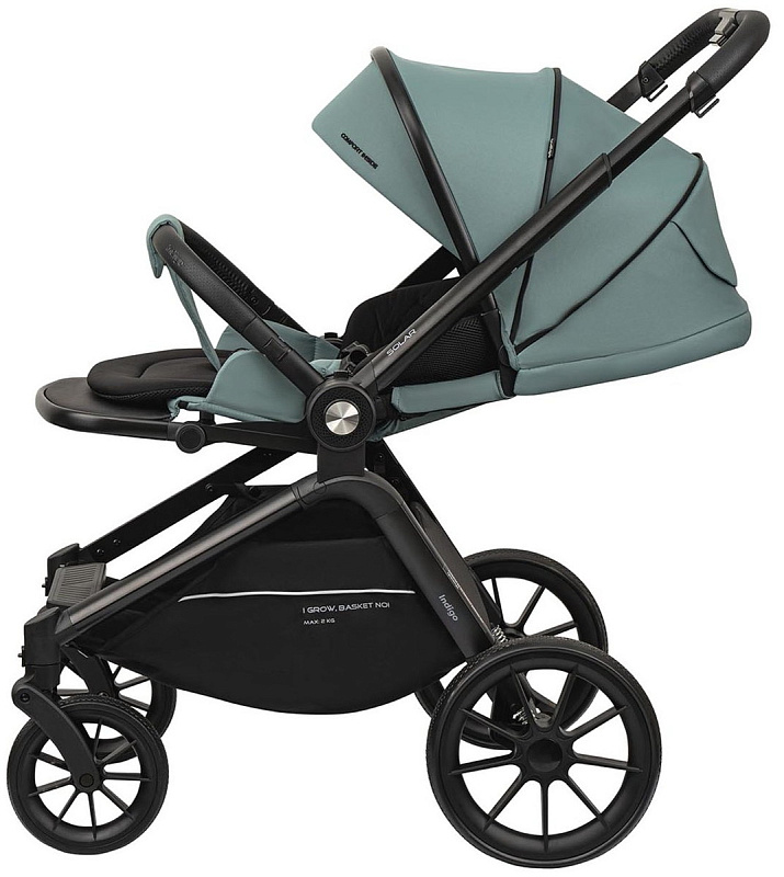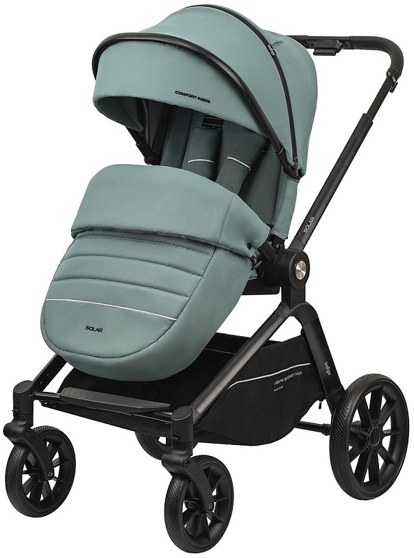 Коляска SOLAR Модель сочетает комфорт для малыша и удобство для родителей. Практичная конструкция, телескопическая ручка с отделкой из перфорированной экокожи, удобные поворотные передние колёса с фиксацией и мягкая амортизация делают коляску удобной в эксплуатации.