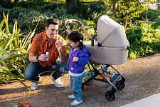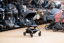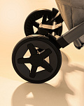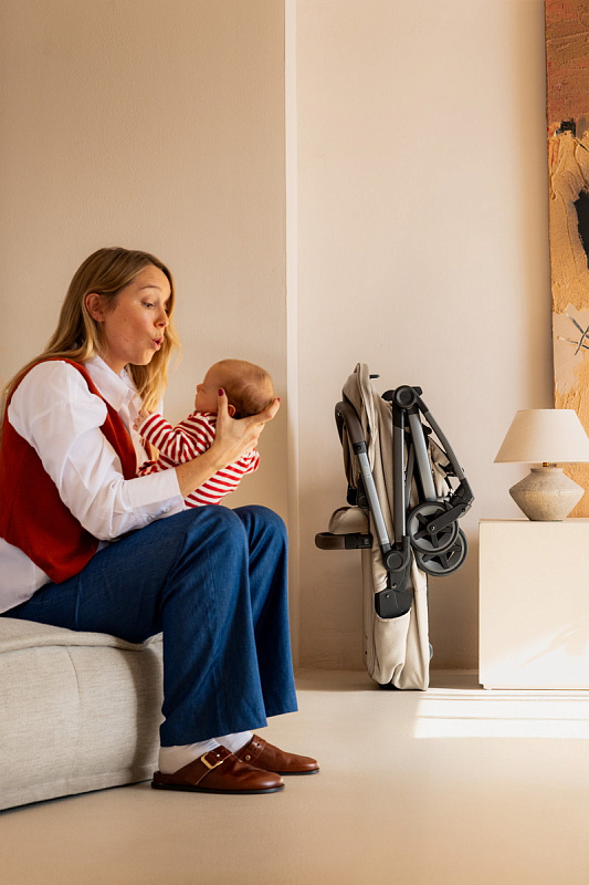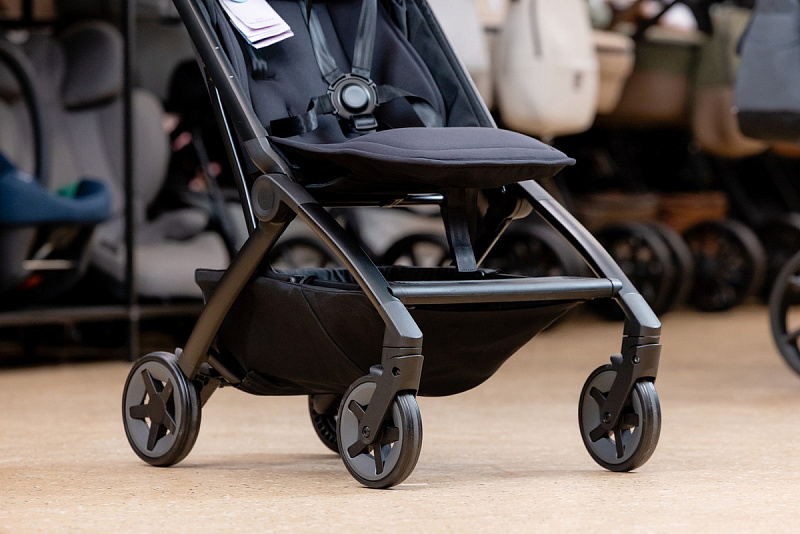 • На шасси можно установить люльку для новорожденного (приобретается отдельно). Она компактно складывается вместе с шасси коляски