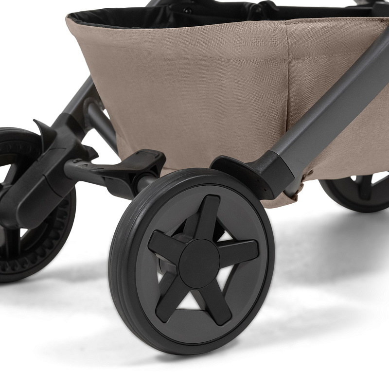 • У коляски сдержанный минималистичный дизайн и качественная фурнитура. Компания Joolz бережно относится к природе: все ткани высокого качества изготавливаются из 100% переработанного пластика.