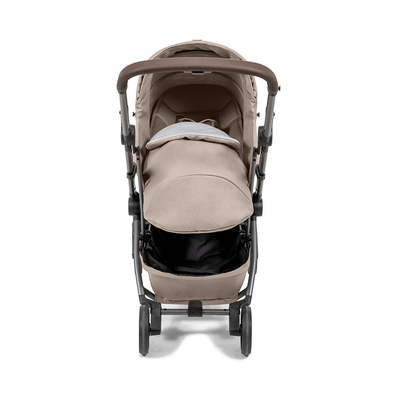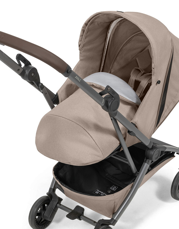 • На шасси можно установить люльку для новорожденного (приобретается отдельно). Она компактно складывается вместе с шасси коляски