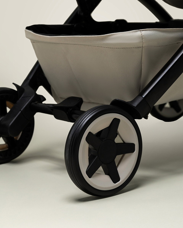 - На шасси можно установить люльку для новорожденного (приобретается отдельно). Она компактно складывается вместе с шасси коляски