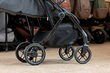 - Подвески на четырех съемных колесах, что обеспечивает плавность прогулок