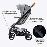 Коляска Nio очень маневренная, имеет прочную конструкцию, что делает ее идеальной для путешествий и изучения новых мест.
