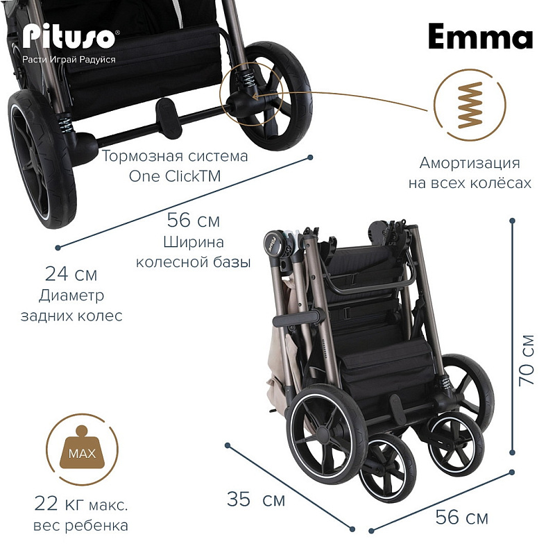 Новинка 2024 года — стильная и удобная прогулочная коляска Pituso Emma Она лёгкая и манёвренная, с комфортным сиденьем, регулируемой спинкой и ручкой. Это обеспечивает максимальный комфорт для родителей и ребёнка во время прогулок.