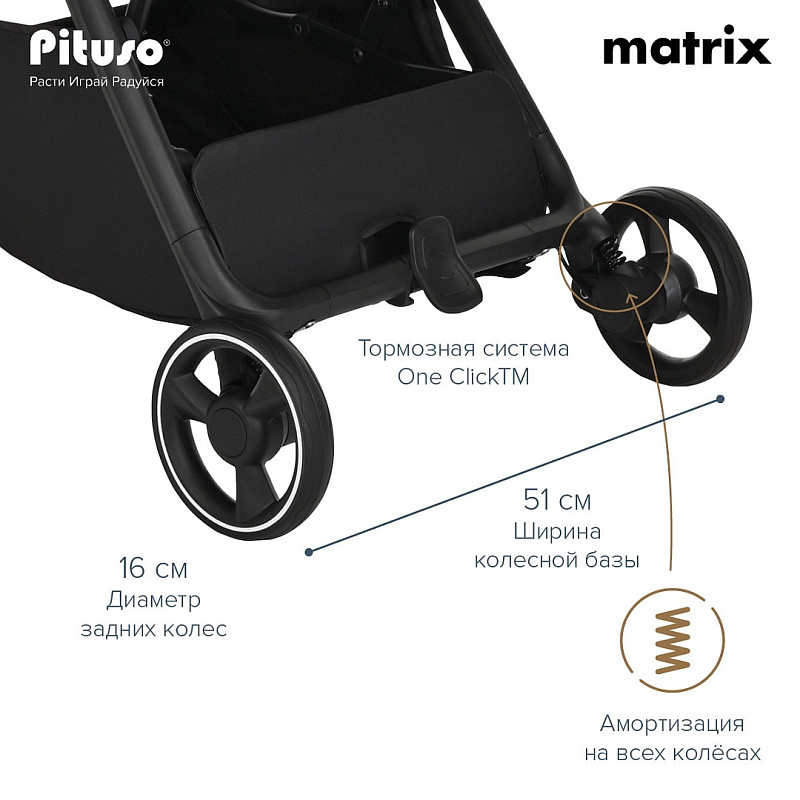 Ультра легкая и компактная коляска Pituso Matrix поможет вам гулять плавно и быстро - это идеальная коляска для тех, кто любит движение и маневренность. Продвинутые инженерные решения позволяют вам пользоваться коляской с легкостью и удовольствием. У заядлых путешественников и энтузиастов будет возможность упаковать в дорожную сумку для удобной транспортировки или хранения.