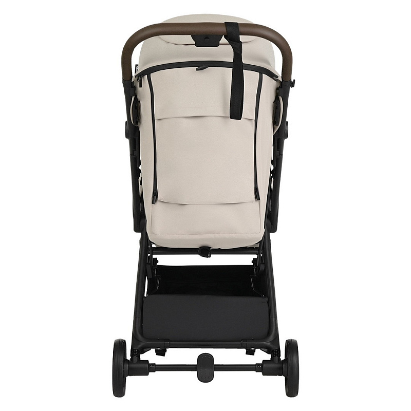 Прочная ручка из эко-кожи приятна на ощупь. Удобная конструкция помогает легко складывать коляску одним нажатием кнопки.