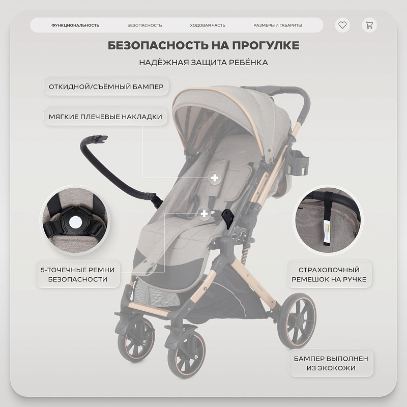 страховочный ремень на ручке, чтобы коляска не уехала от порыва ветра и не укатилась по наклонной поверхности