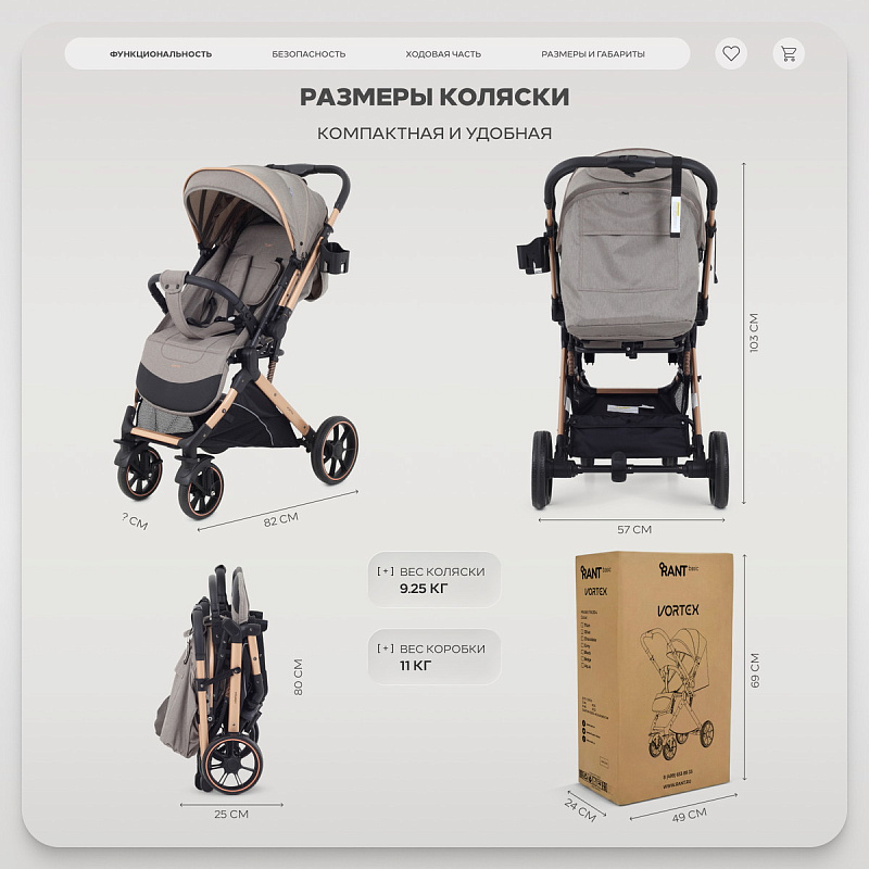 Детская прогулочная коляска RANT BASIC VORTEX - совершенство урбанистического дизайна, воплощенное с использованием современных решений. Модель покорит вас: перекидной ручкой, устойчивым вертикальным положением в сложенном виде, сверхманевренными колесами, материалом чехлов с водоотталкивающим эффектом.