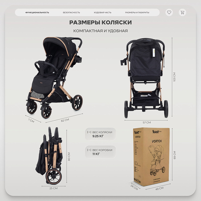 Детская прогулочная коляска RANT BASIC VORTEX - совершенство урбанистического дизайна, воплощенное с использованием современных решений. Модель покорит вас: перекидной ручкой, устойчивым вертикальным положением в сложенном виде, сверхманевренными колесами, материалом чехлов с водоотталкивающим эффектом.