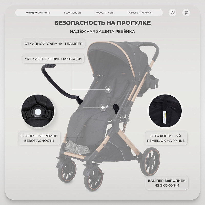 страховочный ремень на ручке, чтобы коляска не уехала от порыва ветра и не укатилась по наклонной поверхности