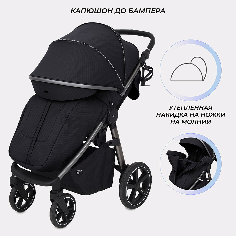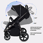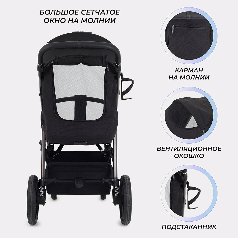 главная инновация модели - бескамерные резиновые колеса, которые не требуют поддува. Благодаря им коляска легко преодолеет сложный ландшафт: сугробы, грязь, песок, гравий…