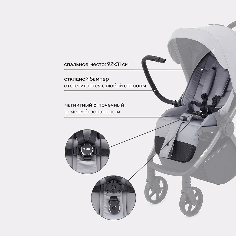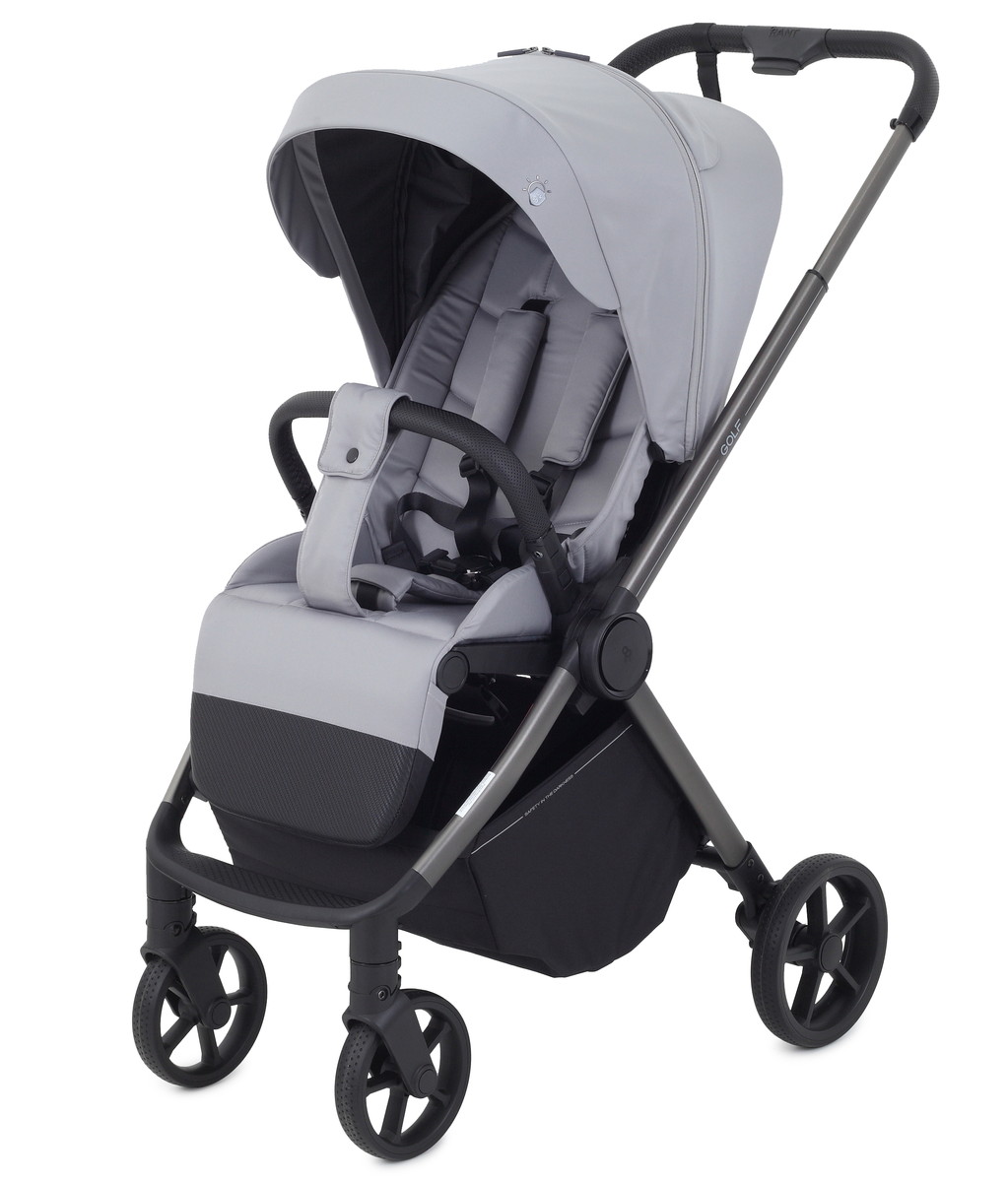 Rant Golf будет удивлять вас снова и снова! Новые фишки детской прогулочной коляски: абсолютная инновация - магнитный замок на ремне безопасности, перфорированная спинка, регулировка капюшона по высоте, противокоррозионная рама, богатая комплектация