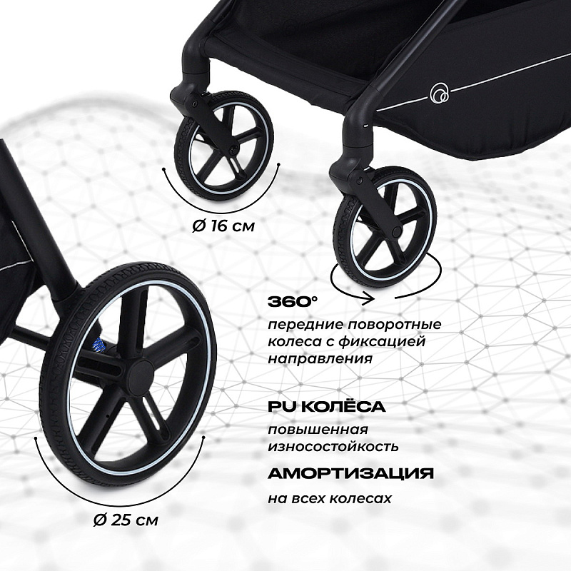 - пружинная амортизация на всех 4 колесах дарит коляске невероятно мягкий ход