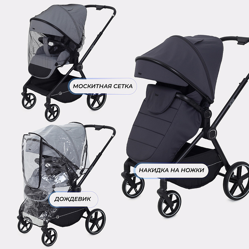 - москитная сетка и дождевик с окошком в комплектации подарят дополнительный комфорт при прогулках