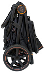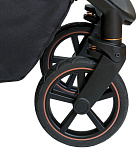 Коляска обладает превосходными характеристиками, в том числе мягкостью хода, которая достигается новыми, инновационными, не прокалываемыми колесами и независимой амортизацией для всех 4х колес. Передние поворотные колеса – с возможностью фиксации, для передвижения по бездорожью. Задние колеса увеличенного диаметра имеют регулировку жесткости, для различного типа покрытия дороги.