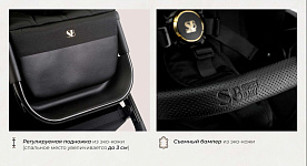 - подножка регулируется не только по наклону, но и по длине, что позволит настроить ее под положение ножек подросшего ребенка, а также для обеспечения комфортного сна малыша и увеличения его спального места на 3 см. Подножка обшита экокожей, для упрощения чистки