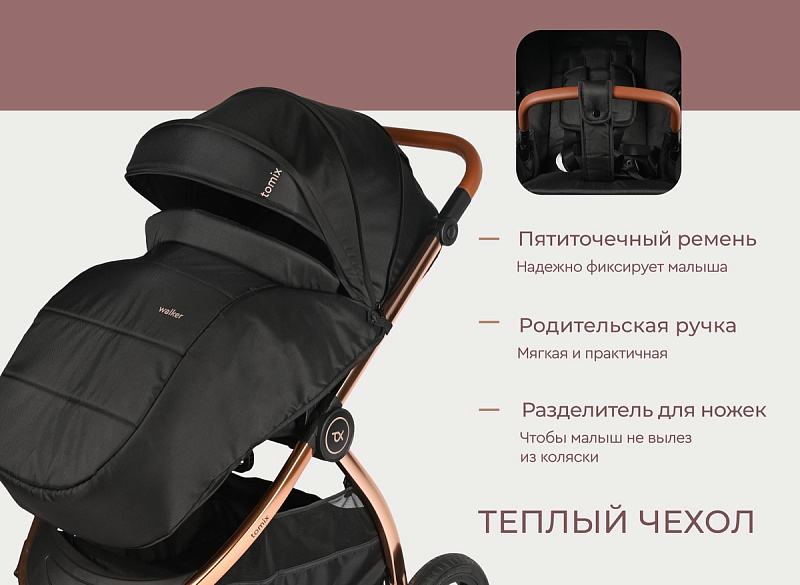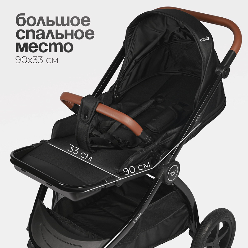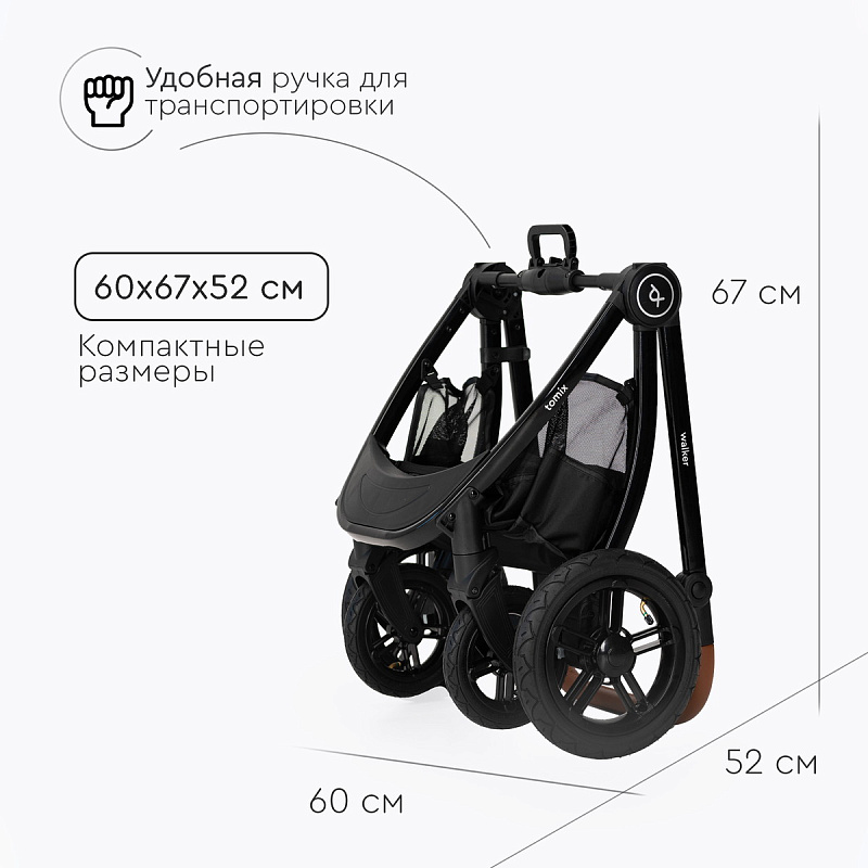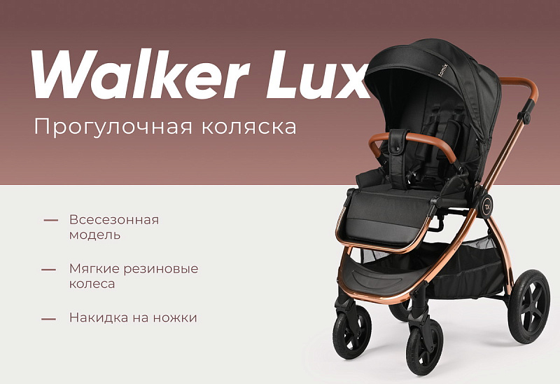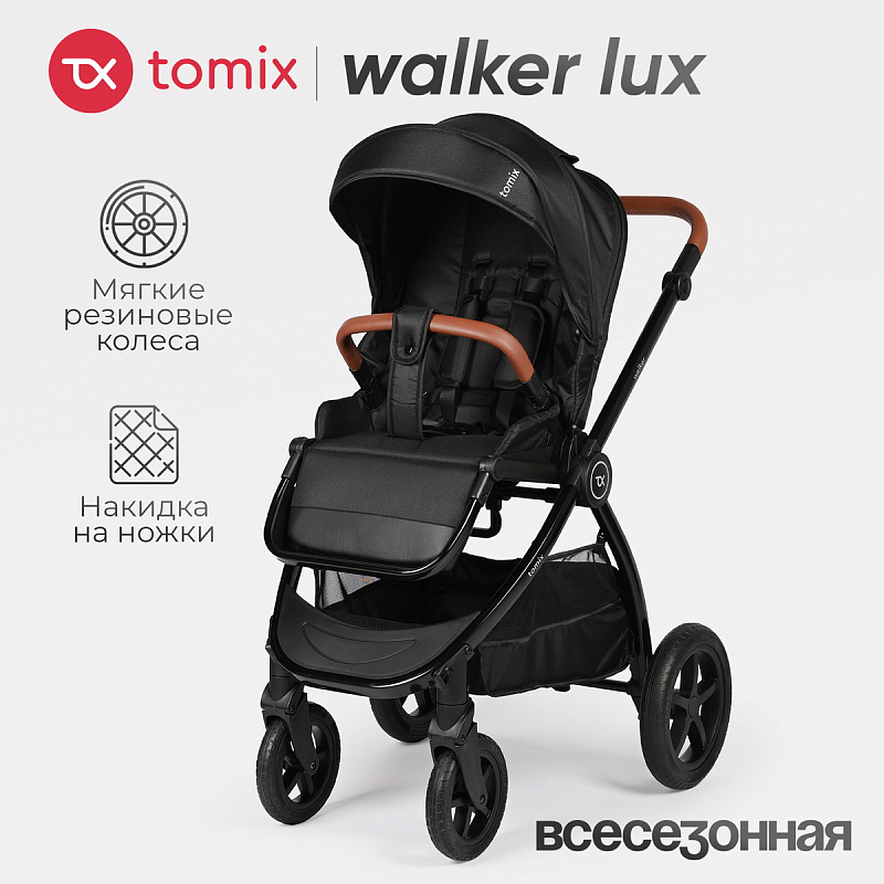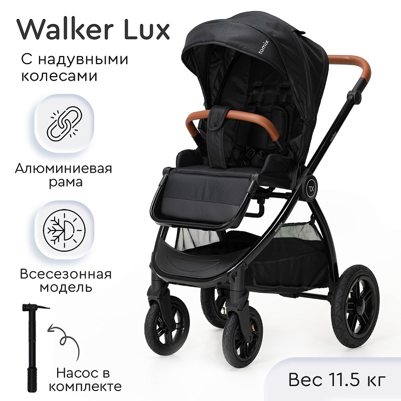 Прогулочная коляска Tomix Walker в версии LUX — это полюбившаяся покупателям модель коляски Walker, в которую мы добавили большие надувные колеса и анодированную полированную раму, а родительскую ручку и бампер сделали из экокожи премиального качества. Такая коляска пройдет по любому бездорожью, ей не страшны снег и прочие препятствия, а стильный и современный дизайн будет приковывать взгляды прохожих!