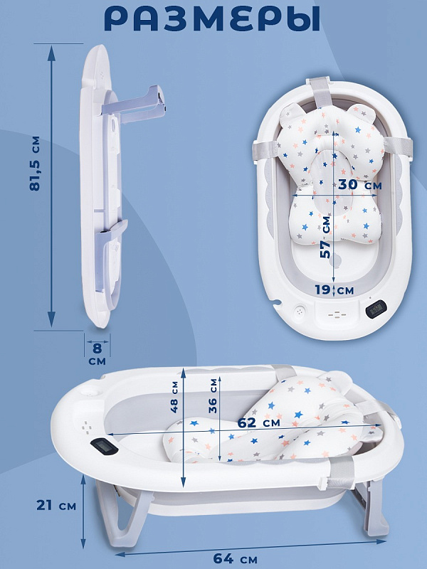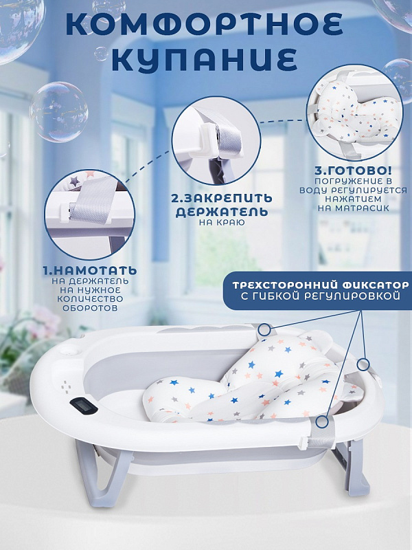 Ищете удобную и безопасную ванночку для купания вашего малыша? Представляем вам складную ванночку для новорожденных с встроенным термометром – идеальный выбор для заботливых родителей! Эта уникальная ванночка обладает рядом преимуществ, которые сделают процесс купания вашего ребенка комфортным и безопасным. Встроенный термометр позволяет контролировать температуру воды, чтобы она была идеально подходящей для вашего малыша. Теперь вы можете быть уверены, что вода не будет слишком горячей или холодной, и ваш ребенок будет наслаждаться купанием. Особенностью этой ванночки является наличие подушки, которая обеспечит максимальный комфорт вашему малышу. Мягкая и удобная подушка поддерживает правильное положение головы и шейки позвоночника, что особенно важно для новорожденных. Ваш ребенок будет чувствовать себя комфортно и безопасно во время купания, а вы сможете наслаждаться процессом без лишних переживаний. Складная конструкция ванночки делает ее идеальным вариантом для путешествий или поездок к родственникам. Вы можете легко сложить ее и положить в сумку или чемодан, не занимая много места. Это особенно удобно, когда вы находитесь вдали от дома и хотите обеспечить комфортное купание вашего малыша. Ванночка оснащена удобной лейкой, которая позволяет легко смывать мыло и шампунь с кожи ребенка. Вы сможете быстро и эффективно очистить вашего малыша, не вызывая дискомфорта или раздражения. Лейка также поможет вам сэкономить воду, что является важным аспектом в наше экологически осознанное время. Ванночка для новорожденных с термометром выполнена из высококачественного и безопасного материала, который не вызывает аллергических реакций или раздражения кожи. Вы можете быть уверены, что ваш ребенок находится в безопасности и комфорте во время купания. Мягкие края ванночки предотвращают возможные травмы или ссадины, обеспечивая дополнительную защиту для вашего малыша. Приобретая складную ванночку для новорожденных с термометром, вы получаете не только удобный и безопасный продукт, но и возможность создать незабываемые моменты во время купания вашего малыша. Позвольте ему насладиться приятной и расслабляющей процедурой, которая так важна для его здоровья и развития. Не упустите возможность сделать купание вашего малыша еще более приятным и комфортным. Закажите складную ванночку для новорожденных с термометром прямо сейчас и наслаждайтесь каждым моментом, проведенным вместе со своим малышом. Ваш ребенок заслуживает только самое лучшее!