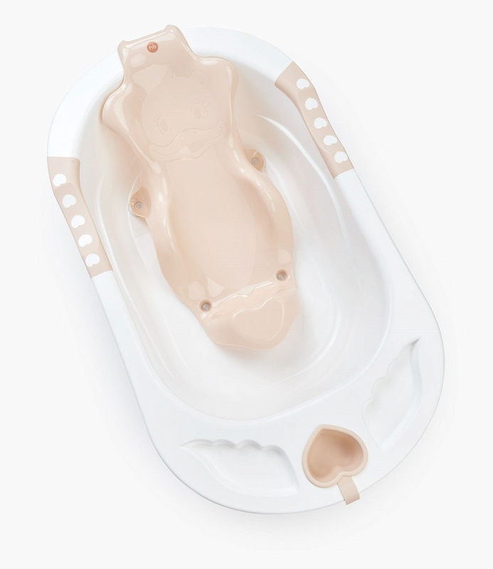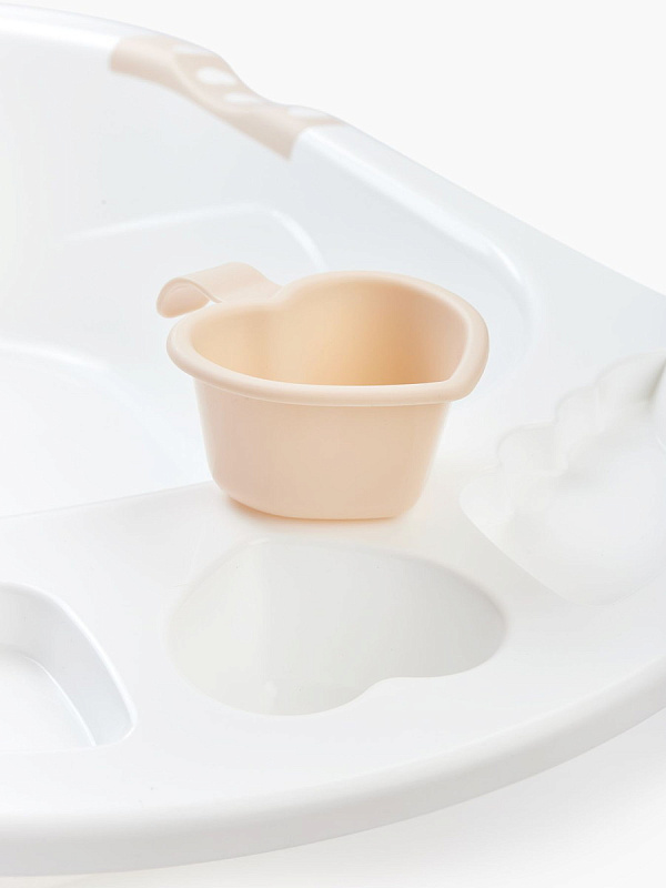 - По периметру ванночки есть специальные углубления для средств ухода за малышом.