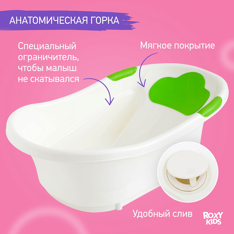 Детская ванночка Roxy-Kids c анатомической горкой и сливом Зеленый