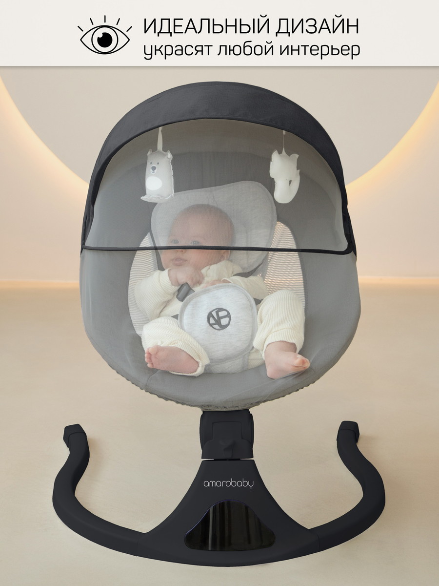 Электронные качели для малышей Amarobaby Funny swing - прекрасное решение для заботливых родителей. Благодаря большому количеству разнообразных функций, вы всегда сможете подобрать комфортное положение и развлечение для вашего малыша. 12 встроенных мелодий создадут комфортную и неповторимую атмосферу, с помощью функции Bluetooth вы сможете поставить любую понравившуюся мелодию прямо с телефона. Так же вы можете воспользоваться функцией usb, заранее записав на носитель любимые сказки и мелодии в формате mp3.
